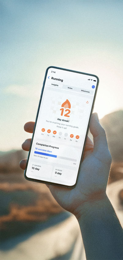 単なるストリークではなく、強力なインサイトを獲得しましょう。明確なグラフは進捗状況を示し、成功または失敗の理由を理解するのに役立ちます。そのため、実際の変化に合わせてより迅速に最適化できます。